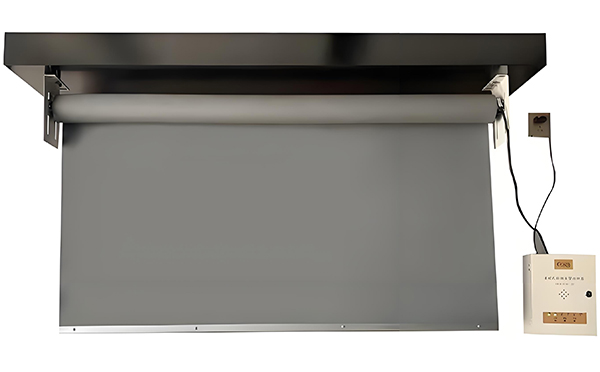 连接电源线和控制线,将五家渠挡烟垂壁安装在支架上,并用螺丝固定。